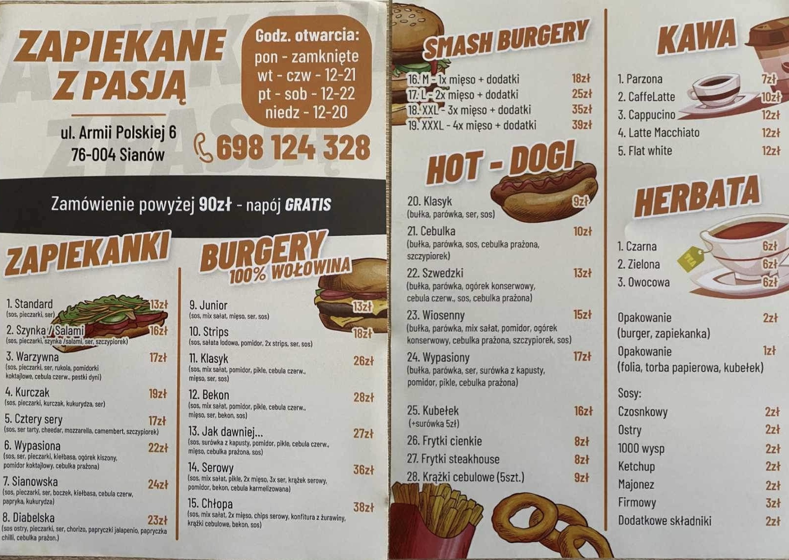 Serwujemy burgery i zapiekanki które wykonujemy od a do z na miejscu.
